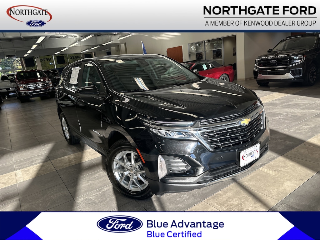 ***FORD BLUE CERTIFIED! ONE OWNER! CLEAN CARFAX! Equinox LT, 4D Sport Utility, AWD, 17" Aluminum Wheels, 2 Rear USB Charging-Only Ports, 2 USB Ports & Auxiliary Input Jack, 3-Spoke Leather-Wrapped Steering Wheel, 6 Speaker Audio System Feature, Auto High-beam Headlights, Bluetooth® For Phone, Confidence & Convenience Package, Driver Confidence II Package, Driver Convenience Package, Dual Zone Automatic Climate Control, Electronic Stability Control, Front & Rear Park Assist, Heated Driver & Front Passenger Seats, Lane Change Alert w/Side Blind Zone Alert, Preferred Equipment Group 1LT, Premium audio system: Chevrolet Infotainment 3, Radio data system, Radio: Chevrolet Infotainment 3 System w/AM/FM, Rear Cross Traffic Alert, Rear Power Liftgate, Remote Start, SiriusXM Radio. Odometer is 11800 miles below market average! 25/30 City/Highway MPG Clean CARFAX. Mosaic Black Metallic 2022 Chevrolet Equinox LT