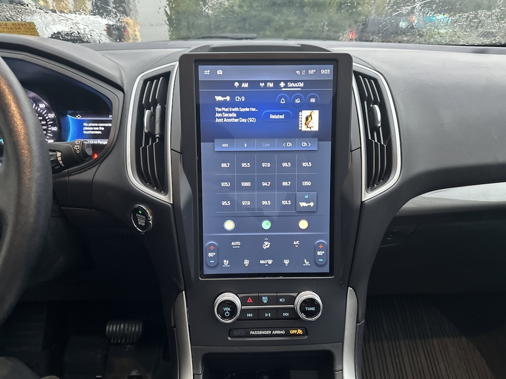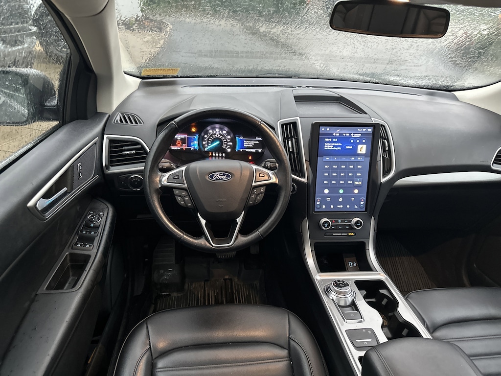 THIS VEHICLE ALSO HAS THE FOLLOWING OPTIONS AND FEATURES:Convenience Package (110V/150W AC Power Outlet, Fog Lamps w/Iconic Silver Bezel, Perimeter Alarm, Power Liftgate, Remote Start System, Universal Garage Door Opener (UGDO), and Wireless Charging Pad), Equipment Group 201A, Edge SEL, 4D Sport Utility, EcoBoost 2.0L I4 GTDi DOHC Turbocharged VCT, AWD, ActiveX Seating Material Heated Bucket Seats, Auto High-beam Headlights, Automatic temperature control, Electronic Stability Control, FordPass Connect, Panoramic Vista Roof, Radio: AM/FM Stereo/MP3 Capable, Rear Parking Sensors, SiriusXM w/360L, SYNC 4A w/Enhanced Voice Recognition, Wheels: 18" Sparkle Silver-Painted Aluminum, 3.80 Axle Ratio, 4-Wheel Disc Brakes, 6 Speakers, ABS brakes, Air Conditioning, Alloy wheels, AM/FM radio: SiriusXM with 360L, Auto-dimming Rear-View mirror, Brake assist, Bumpers: body-color, Compass, Delay-off headlights, Driver door bin, Driver vanity mirror, Dual front impact airbags, Dual front side impact airbags, Emergency communication system: SYNC 4 911 Assist, Four wheel independent suspension, Front & Rear Floor Liners w/o Carpet Mats, Front anti-roll bar, Front Bucket Seats, Front Center Armrest w/Storage, Front dual zone A/C, Front reading lights, Fully automatic headlights, Heated door mirrors, Heated front seats, Heated Steering Wheel, Illuminated entry, Knee airbag, Leather steering wheel, Leather-Wrapped Steering Wheel, Low tire pressure warning, Occupant sensing airbag, Outside temperature display, Overhead airbag, Overhead console, Panic alarm, Passenger door bin, Passenger vanity mirror, Power door mirrors, Power driver seat, Power passenger seat, Power steering, Power windows, Rear anti-roll bar, Rear reading lights, Rear seat center armrest, Rear window defroster, Rear window wiper, Remote keyless entry, Speed control, Speed-Sensitive Wipers, Split folding rear seat, Spoiler, Steering wheel mounted audio controls, Tachometer, Telescoping