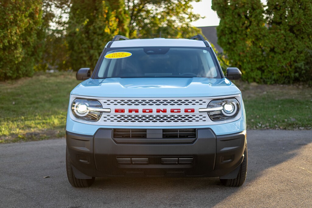 Rear View Camera, Back Up Alarm System, Parking Sensors, Touch Screen, Handsfree Calling/Bluetooth, USB/AUX Ports, Pre-Collision Assist, Blind Spot Monitoring System, Lane-Keeping System Alert, Lane Keeping System, Alloy wheels, Automatic temperature control, Equipment Group 250A, Rear Parking Sensors, Steering wheel mounted audio controls, SYNC 4 w/Enhanced Voice Recognition, Wheels: 17" Oxford White-Painted Aluminum. 2025 Ford Bronco Sport 4D Sport Utility Heritage 44 Robins Egg Blue 1.5L EcoBoost 4WD 25/30 City/Highway MPG Price includes: Although every reasonable effort has been made to ensure the accuracy of the information contained on this site, absolute accuracy cannot be guaranteed. All vehicles are subject to prior sale. Price does not include applicable tax, title, license, and a $387.00 documentation fee or other fees required by law, lending institutions, and/or lessors. Vehicles shown at different locations are not currently in our inventory (not in stock) but can be made available at our location within a reasonable time after your request. Listed APR, down payment, payments, incentives and other terms are estimates for example purposes only. The payment information provided here is not a commitment by any organization to provide credit, leases or other programs. Some customers may not qualify for listed programs.$1000 - Retail Bonus Cash. Exp. 01/05/2026