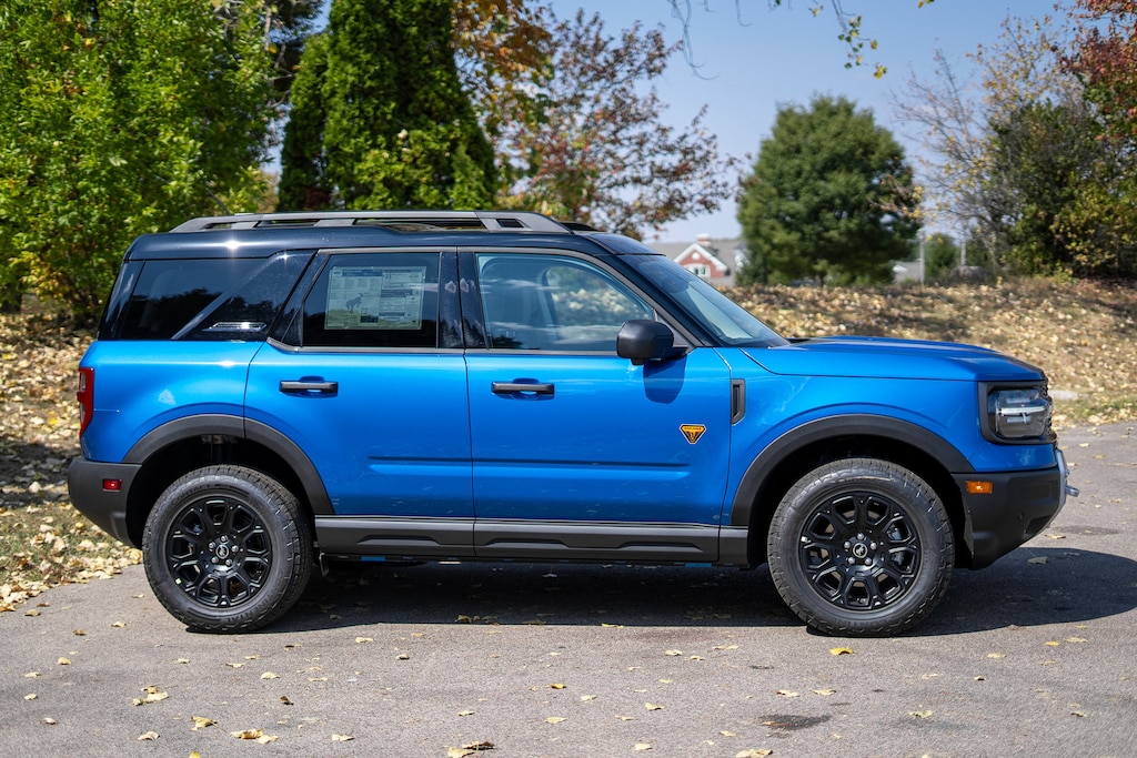 Sunroof/Moonroof, Rear View Camera, Back Up Alarm System, Parking Sensors, Touch Screen, Handsfree Calling/Bluetooth, USB/AUX Ports, Pre-Collision Assist, Blind Spot Monitoring System, Lane-Keeping System Alert, Lane Keeping System, Alloy wheels, B&O Sound System by Bang & Olufsen, Badlands Tech Package, Connected Navigation, Equipment Group 400A, HD Radio, Heated front seats, Heated steering wheel, Memory seat, Power Moonroof, SYNC 4 w/Enhanced Voice Recognition, Wheels: 17" Matte Black-Painted Aluminum. 2025 Ford Bronco Sport 4D Sport Utility Badlands 80 Velocity Blue Metallic EcoBoost 2.0L I4 GTDi DOHC Turbocharged VCT 4WD 21/27 City/Highway MPG Price includes: Although every reasonable effort has been made to ensure the accuracy of the information contained on this site, absolute accuracy cannot be guaranteed. All vehicles are subject to prior sale. Price does not include applicable tax, title, license, and a $387.00 documentation fee or other fees required by law, lending institutions, and/or lessors. Vehicles shown at different locations are not currently in our inventory (not in stock) but can be made available at our location within a reasonable time after your request. Listed APR, down payment, payments, incentives and other terms are estimates for example purposes only. The payment information provided here is not a commitment by any organization to provide credit, leases or other programs. Some customers may not qualify for listed programs.$1000 - Retail Bonus Cash. Exp. 01/05/2026