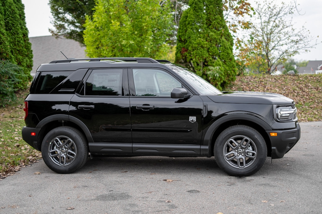 Rear View Camera, Back Up Alarm System, Parking Sensors, Touch Screen, Handsfree Calling/Bluetooth, USB/AUX Ports, Pre-Collision Assist, Blind Spot Monitoring System, Lane-Keeping System Alert, Auto High-beam Headlights, Convenience Package, Equipment Group 200A, Front Driver/Passenger Seat Back Map Pockets, Heated 8-Way Power Driver's Seat, LED Fog Lamps, Premium Wrapped Steering Wheel, Rear Parking Sensors, SYNC 4 w/Enhanced Voice Recognition, Universal Garage Door Opener (UGDO), Wheels: 17" Carbonized Gray-Painted Aluminum. 2025 Ford Bronco Sport 4D Sport Utility Big Bend 25 Shadow Black 1.5L EcoBoost 4WD 25/30 City/Highway MPG Price includes: Although every reasonable effort has been made to ensure the accuracy of the information contained on this site, absolute accuracy cannot be guaranteed. All vehicles are subject to prior sale. Price does not include applicable tax, title, license, and a $387.00 documentation fee or other fees required by law, lending institutions, and/or lessors. Vehicles shown at different locations are not currently in our inventory (not in stock) but can be made available at our location within a reasonable time after your request. Listed APR, down payment, payments, incentives and other terms are estimates for example purposes only. The payment information provided here is not a commitment by any organization to provide credit, leases or other programs. Some customers may not qualify for listed programs.$1000 - Retail Bonus Cash. Exp. 01/05/2026