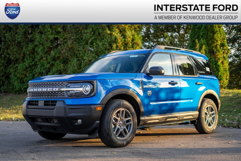 Voice Activated Navigation, Rear View Camera, Back Up Alarm System, Parking Sensors, Touch Screen, Handsfree Calling/Bluetooth, USB/AUX Ports, Pre-Collision Assist, Blind Spot Monitoring System, Lane-Keeping System Alert, Lane Keeping System, Alloy wheels, Convenience Package, Equipment Group 200A, Front Driver/Passenger Seat Back Map Pockets, Heated 8-Way Power Driver's Seat, LED Fog Lamps, Premium Wrapped Steering Wheel, Steering wheel mounted audio controls, SYNC 4 w/Enhanced Voice Recognition, Universal Garage Door Opener (UGDO), Wheels: 17" Carbonized Gray-Painted Aluminum. 2025 Ford Bronco Sport 4D Sport Utility Big Bend 28 Velocity Blue Metallic 1.5L EcoBoost 4WD 25/30 City/Highway MPG Price includes: Although every reasonable effort has been made to ensure the accuracy of the information contained on this site, absolute accuracy cannot be guaranteed. All vehicles are subject to prior sale. Price does not include applicable tax, title, license, and a $387.00 documentation fee or other fees required by law, lending institutions, and/or lessors. Vehicles shown at different locations are not currently in our inventory (not in stock) but can be made available at our location within a reasonable time after your request. Listed APR, down payment, payments, incentives and other terms are estimates for example purposes only. The payment information provided here is not a commitment by any organization to provide credit, leases or other programs. Some customers may not qualify for listed programs.$1000 - Retail Bonus Cash. Exp. 01/05/2026