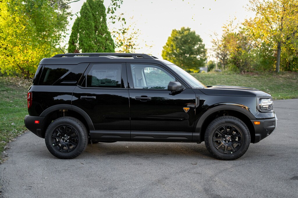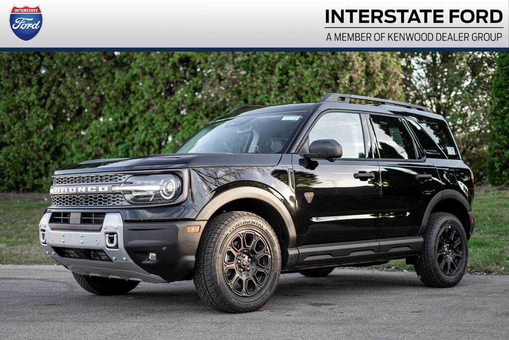 Voice Activated Navigation, Rear View Camera, Back Up Alarm System, Parking Sensors, Touch Screen, Handsfree Calling/Bluetooth, USB/AUX Ports, Pre-Collision Assist, Blind Spot Monitoring System, Lane-Keeping System Alert, 360 Degree Camera, Lane Keeping System, Remote Start, Alloy wheels, B&O Sound System by Bang & Olufsen, Badlands Tech Package, Connected Navigation, Equipment Group 400A, HD Radio, Heated steering wheel, Memory seat, SYNC 4 w/Enhanced Voice Recognition, Wheels: 17" Matte Black-Painted Aluminum. 2025 Ford Bronco Sport 4D Sport Utility Badlands 80 Shadow Black EcoBoost 2.0L I4 GTDi DOHC Turbocharged VCT 4WD 21/27 City/Highway MPG Price includes: Although every reasonable effort has been made to ensure the accuracy of the information contained on this site, absolute accuracy cannot be guaranteed. All vehicles are subject to prior sale. Price does not include applicable tax, title, license, and a $387.00 documentation fee or other fees required by law, lending institutions, and/or lessors. Vehicles shown at different locations are not currently in our inventory (not in stock) but can be made available at our location within a reasonable time after your request. Listed APR, down payment, payments, incentives and other terms are estimates for example purposes only. The payment information provided here is not a commitment by any organization to provide credit, leases or other programs. Some customers may not qualify for listed programs.$1000 - Retail Bonus Cash. Exp. 01/05/2026