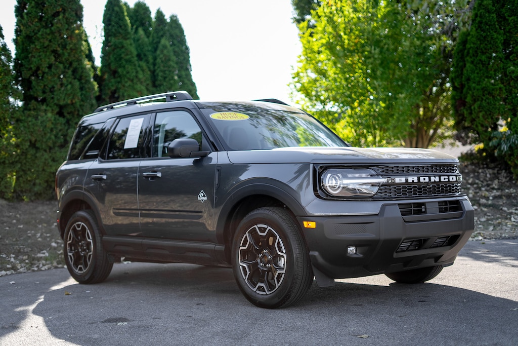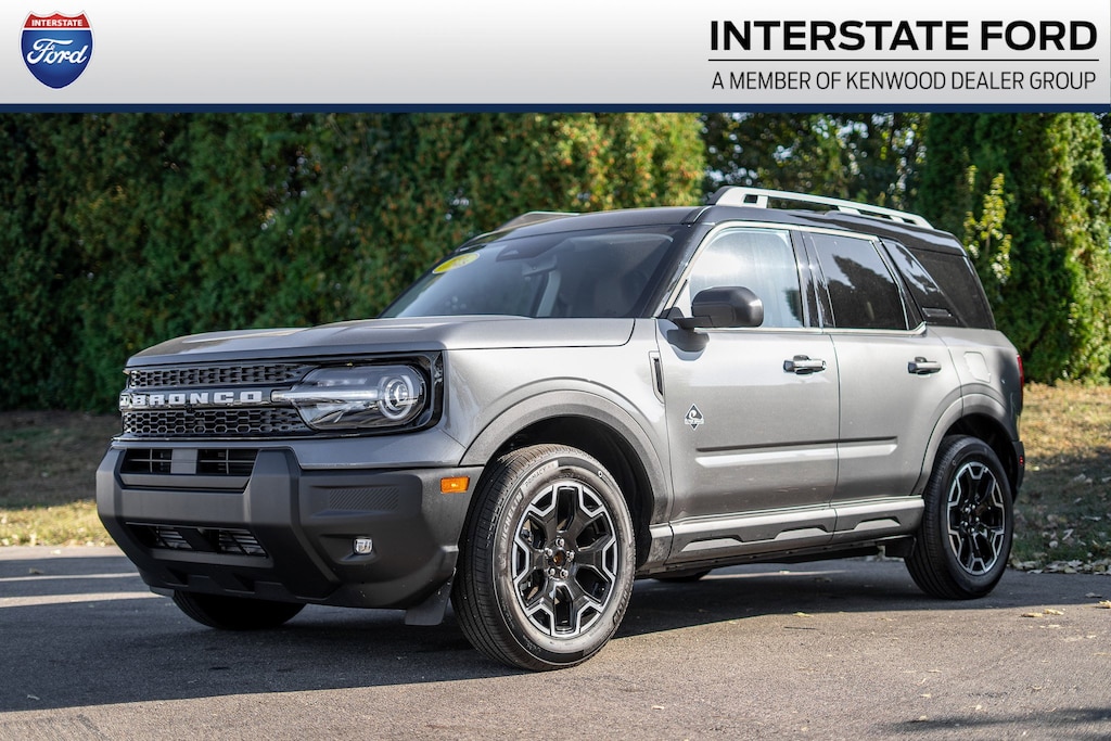 Rear View Camera, Back Up Alarm System, Parking Sensors, Touch Screen, Handsfree Calling/Bluetooth, USB/AUX Ports, Pre-Collision Assist, Blind Spot Monitoring System, Lane-Keeping System Alert, Alloy wheels, Equipment Group 300A, Front dual zone A/C, Heated front seats, Heated steering wheel, Memory seat, Power driver seat, Rain sensing wipers, SYNC 4 w/Enhanced Voice Recognition, Wheels: 18" Ebony Black-Painted Aluminum. 2025 Ford Bronco Sport 4D Sport Utility Outer Banks 44 Gray Metallic 1.5L EcoBoost 4WD 25/30 City/Highway MPG Price includes: Although every reasonable effort has been made to ensure the accuracy of the information contained on this site, absolute accuracy cannot be guaranteed. All vehicles are subject to prior sale. Price does not include applicable tax, title, license, and a $387.00 documentation fee or other fees required by law, lending institutions, and/or lessors. Vehicles shown at different locations are not currently in our inventory (not in stock) but can be made available at our location within a reasonable time after your request. Listed APR, down payment, payments, incentives and other terms are estimates for example purposes only. The payment information provided here is not a commitment by any organization to provide credit, leases or other programs. Some customers may not qualify for listed programs.$1000 - Retail Bonus Cash. Exp. 01/05/2026