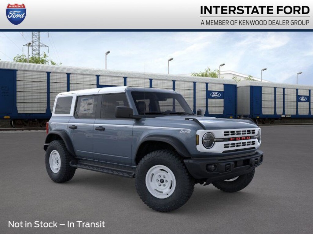 2025 Ford Bronco 4D Sport Utility Heritage Edition 20 Azure Gray Metallic Tri-Coat 2.7L EcoBoost V6 4WD Price includes: Although every reasonable effort has been made to ensure the accuracy of the information contained on this site, absolute accuracy cannot be guaranteed. All vehicles are subject to prior sale. Price does not include applicable tax, title, license, and a $387.00 documentation fee or other fees required by law, lending institutions, and/or lessors. Vehicles shown at different locations are not currently in our inventory (not in stock) but can be made available at our location within a reasonable time after your request. Listed APR, down payment, payments, incentives and other terms are estimates for example purposes only. The payment information provided here is not a commitment by any organization to provide credit, leases or other programs. Some customers may not qualify for listed programs.$1500 - Retail Bonus Cash. Exp. 01/05/2026