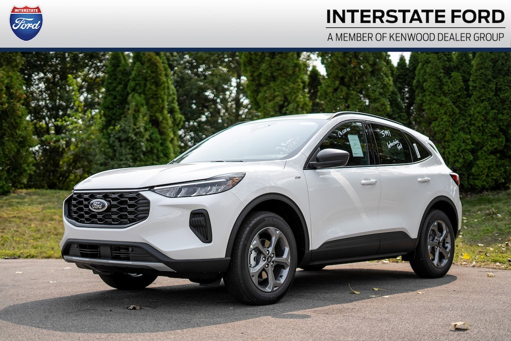 Rear View Camera, Back Up Alarm System, Parking Sensors, Touch Screen, Handsfree Calling/Bluetooth, USB/AUX Ports, Pre-Collision Assist, Blind Spot Monitoring System, Lane-Keeping System Alert, Lane Keeping System, Remote Start, AWD, Alloy wheels, Automatic temperature control, Cold Weather Package, Equipment Group 300A, FordPass Connect, Heated Front Row Seats, Heated Sideview Mirrors, Heated Steering Wheel, Remote Starter System, SYNC 4, Wheels: 18" Rock Metallic Painted Aluminum. 2025 Ford Escape 4D Sport Utility ST-Line 80 Star White Metallic Tri-Coat 1.5L EcoBoost AWD 26/32 City/Highway MPG Price includes: Although every reasonable effort has been made to ensure the accuracy of the information contained on this site, absolute accuracy cannot be guaranteed. All vehicles are subject to prior sale. Price does not include applicable tax, title, license, and a $387.00 documentation fee or other fees required by law, lending institutions, and/or lessors. Vehicles shown at different locations are not currently in our inventory (not in stock) but can be made available at our location within a reasonable time after your request. Listed APR, down payment, payments, incentives and other terms are estimates for example purposes only. The payment information provided here is not a commitment by any organization to provide credit, leases or other programs. Some customers may not qualify for listed programs.$4000 - Bonus Customer Cash. Exp. 01/05/2026