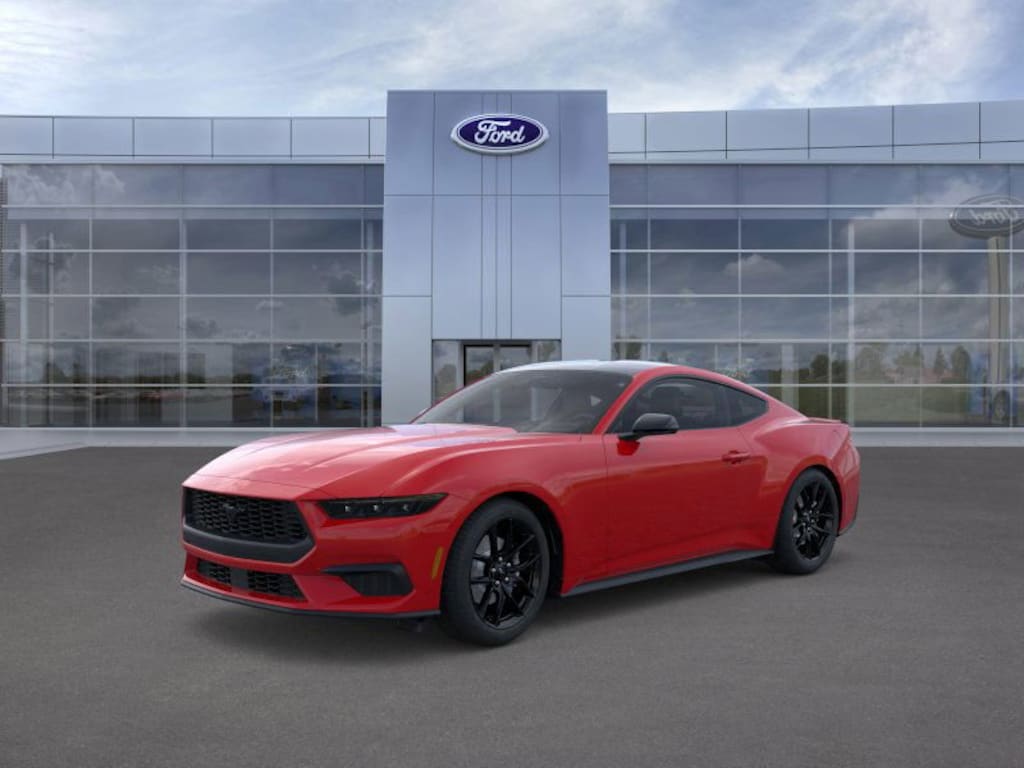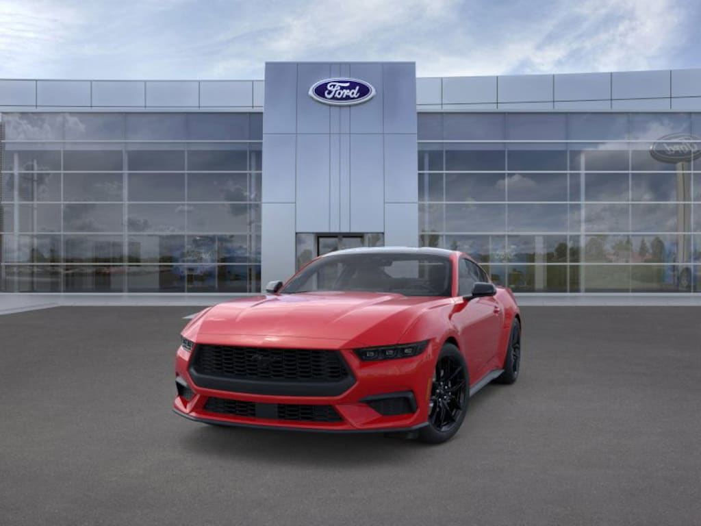 9-Speaker Stereo System, ABS brakes, Active Valve Performance Exhaust, Auto High-beam Headlights, Black Front & Rear Pony Badges, Black Mirror Caps, Cloth/Vinyl Heated Bucket Seats, Compass, Dual front impact airbags, Dual front side impact airbags, Electronic Stability Control, Emergency communication system: 911 Assist, Equipment Group 101A High Package, Exterior Parking Camera Rear, Four wheel independent suspension, Front dual zone A/C, Headlamps w/Black Bezels, Illuminated entry, Low tire pressure warning, Mustang Nite Pony Package, Occupant sensing airbag, Overhead airbag, Painted Black Roof, Remote keyless entry, Shadow Black Blade Decklid Spoiler, SiriusXM w/360L & HD Radio, Speed-sensing steering, Steering wheel mounted audio controls, SYNC 4, Traction control, Wheels: 19" x 8.5" Ebony Black-Painted Aluminum. 2025 Ford Mustang 2D Coupe EcoBoost Race Red EcoBoost 2.3L I4 GTDi DOHC Turbocharged VCT RWD 21/32 City/Highway MPG