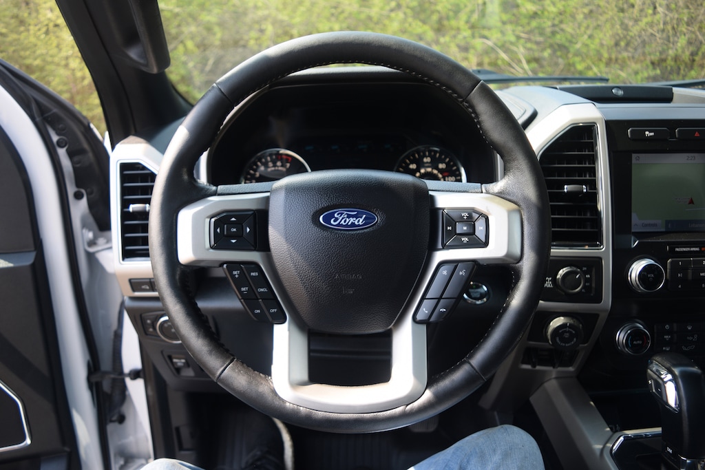 110V/400W Outlet, 2-Bar Body-Color Grille w/4 Minor Bars, 2nd Row Heated Seats, ABS brakes, Accent-Color Angular Step Bars, Alloy wheels, Body-Color Front & Rear Bumpers, Box Side Decals, Chrome 2-Bar Grille w/4 Minor Bars, Chrome Angular Step Bars, Chrome Door & Tailgate Handles w/Body-Color Bezel, Chrome Skull Caps on Exterior Mirrors, Class IV Trailer Hitch Receiver, Compass, Electronic Locking w/3.55 Axle Ratio, Electronic Stability Control, Engine Oil Cooler, Equipment Group 502A Luxury, Extended Range 36 Gallon Fuel Tank, Front dual zone A/C, Heated door mirrors, Heated front seats, Heated Steering Wheel, Illuminated entry, Integrated Trailer Brake Controller, Lariat Bed Utility Package, Lariat Chrome Appearance Package, Lariat Sport Appearance Package, Leather-Trimmed Bucket Seats, LED Sideview Mirror Spotlights, Low tire pressure warning, Max Trailer Tow Package, Power Glass Sideview Mirr w/Chrome Skull Caps, Power Tilt/Telescoping Steering Column w/Memory, Pro Trailer Backup Assist, Quad Beam LED Headlamps & LED Taillamps/Fog Lamps, Radio: B&O Sound System by Bang & Olufsen, Rain-Sensing Wipers, Remote keyless entry, Remote Start System w/Remote Tailgate Release, Reverse Sensing System, Single-Tip Chrome Exhaust, Traction control, Twin Panel Moonroof, Universal Garage Door Opener, Upgraded Front Stabilizer Bar, Wheels: 18 6-Spoke Machined-Aluminum, Wheels: 18 Chrome-Like PVD, Windshield Wiper De-Icer.