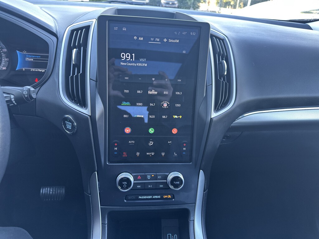THIS VEHICLE ALSO HAS THE FOLLOWING OPTIONS AND FEATURES:Convenience Package (110V/150W AC Power Outlet, Fog Lamps w/Chrome Bezel, Perimeter Alarm, Power Liftgate, Remote Start System, SecuriCode Keyless Entry Keypad, Universal Garage Door Opener (UGDO), and Wireless Charging Pad), Equipment Group 201A, Edge SEL, 4D Sport Utility, AWD, Auto High-beam Headlights, Automatic temperature control, Electronic Stability Control, FordPass Connect, Panoramic Vista Roof, Power passenger seat, Radio: AM/FM Stereo/MP3 Capable, Rear Parking Sensors, SiriusXM w/360L, SYNC 4A w/Enhanced Voice Recognition, Wheels: 18" Sparkle Silver-Painted Aluminum, 3.80 Axle Ratio, 4-Wheel Disc Brakes, 6 Speakers, ABS brakes, ActiveX Seating Material Heated Bucket Seats, Air Conditioning, Alloy wheels, AM/FM radio: SiriusXM with 360L, Auto-dimming Rear-View mirror, Brake assist, Bumpers: body-color, Compass, Delay-off headlights, Driver door bin, Driver vanity mirror, Dual front impact airbags, Dual front side impact airbags, Emergency communication system: SYNC 4 911 Assist, Four wheel independent suspension, Front & Rear Floor Liners w/o Carpet Mats, Front anti-roll bar, Front Bucket Seats, Front Center Armrest w/Storage, Front dual zone A/C, Front reading lights, Fully automatic headlights, Heated door mirrors, Heated front seats, Heated Steering Wheel, Illuminated entry, Knee airbag, Low tire pressure warning, Occupant sensing airbag, Outside temperature display, Overhead airbag, Overhead console, Panic alarm, Passenger door bin, Passenger vanity mirror, Power door mirrors, Power driver seat, Power steering, Power windows, Rear anti-roll bar, Rear reading lights, Rear seat center armrest, Rear window defroster, Rear window wiper, Remote keyless entry, Speed control, Speed-Sensitive Wipers, Split folding rear seat, Spoiler, Steering wheel mounted audio controls, Tachometer, Telescoping steering wheel, Tilt steering wheel, Traction control, Trip computer, and Variably intermittent wipers.