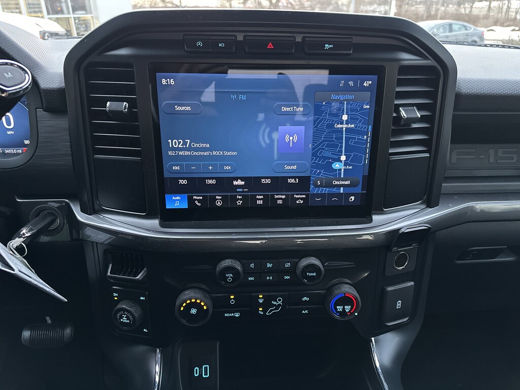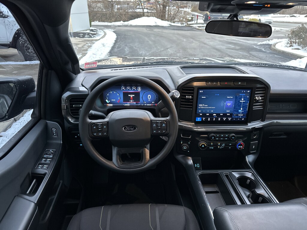 THIS VEHICLE ALSO HAS THE FOLLOWING OPTIONS AND FEATURES:Equipment Group 200A Standard, GVWR: 6,650 lbs Payload Package, STX Black Appearance Package (6" Black Running Boards, Black Exterior Badging, Gray Box Side Decal, Unique Sport Cloth 40/Console/40 Front-Seats, and Wheels: 20" Gloss Black), F-150 STX, 4D SuperCrew, 4WD, AM/FM radio: SiriusXM with 360L, Auto High-beam Headlights, Electronic Locking w/3.55 Axle Ratio, Electronic Stability Control, Front Bucket Seats, Navigation system: Connected Navigation, Radio: AM/FM SiriusXM w/360L, SYNC 4 w/Enhanced Voice Recognition, 4-Wheel Disc Brakes, 6 Speakers, ABS brakes, Air Conditioning, Alloy wheels, Brake assist, Bumpers: body-color, Compass, Delay-off headlights, Driver door bin, Dual front impact airbags, Dual front side impact airbags, Emergency communication system: SYNC 4 911 Assist, Front anti-roll bar, Front Center Armrest, Front fog lights, Front reading lights, Front wheel independent suspension, Fully automatic headlights, Heated door mirrors, Illuminated entry, Low tire pressure warning, Occupant sensing airbag, Outside temperature display, Overhead airbag, Overhead console, Panic alarm, Passenger door bin, Passenger vanity mirror, Power door mirrors, Power steering, Power windows, Radio data system, Rear step bumper, Rear window defroster, Remote keyless entry, Security system, Speed control, Split folding rear seat, Steering wheel mounted audio controls, Tachometer, Telescoping steering wheel, Tilt steering wheel, Traction control, Trip computer, Variably intermittent wipers, and Voltmeter.