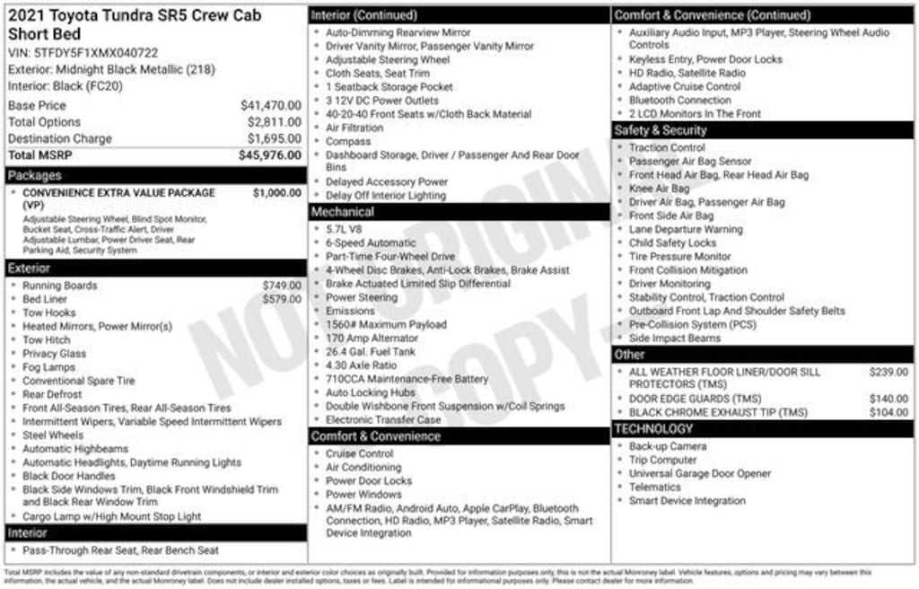 Used 2021 ToyotaTundra SR5 Truck CrewMax V-8 cyl