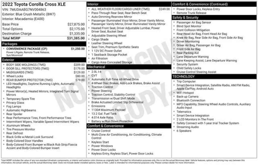 * Although every reasonable effort has been made to ensure the accuracy of the information contained on this site, absolute accuracy cannot be guaranteed. All vehicles are subject to prior sale. Price does not include applicable tax, title, license, and a $398.00 documentation fee or other fees required by law, lending institutions, and/or lessors. Vehicles shown at different locations are not currently in our inventory (not in stock) but can be made available at our location within a reasonable time after your request.